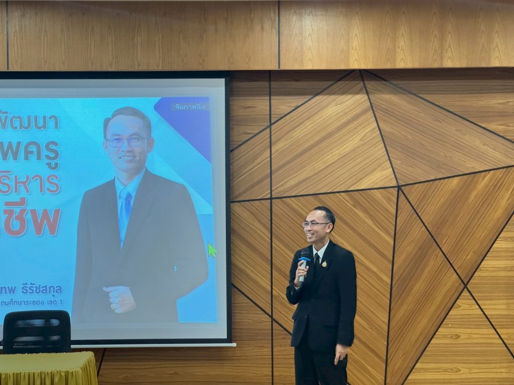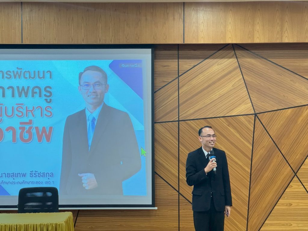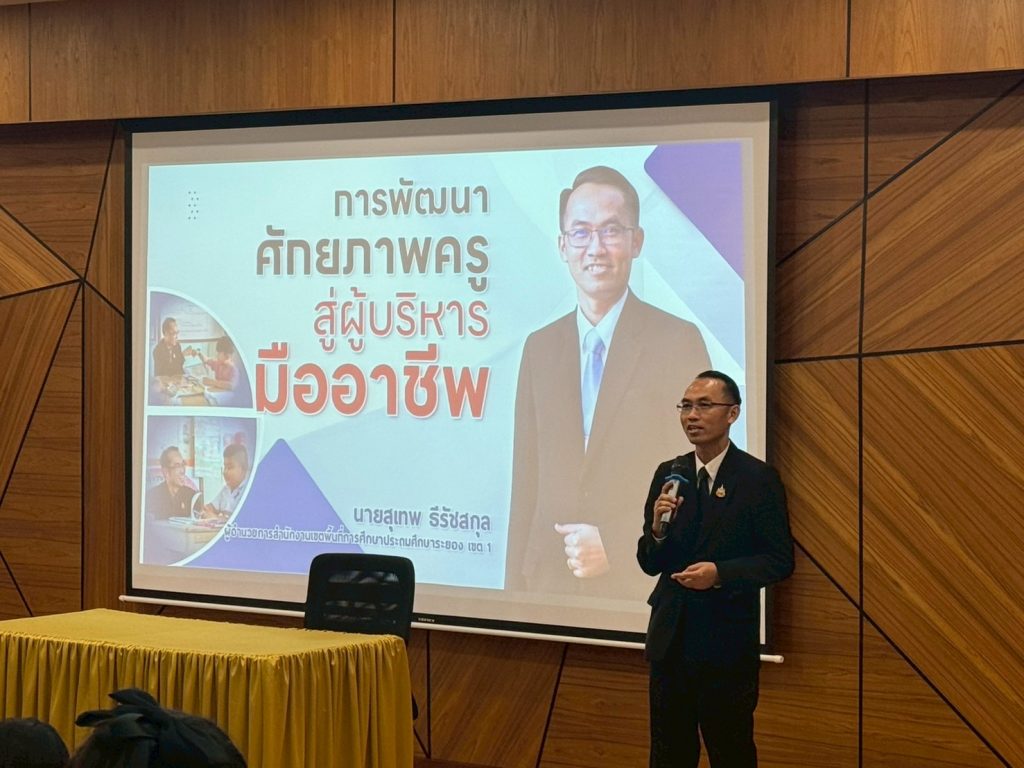 นายสุเทพ ธีรัชสกุล ผู้อำนวยการสำนักงานเขตพื้นที่การศึกษาประถมศึกษาระยอง เขต 1 ได้รับเชิญเป็นวิทยากรบรรยาย ในการสัมมนาทางวิชาการ โครงการพลิกโฉมการศึกษาด้วยนวัตกรรมขับเคลื่อนผลลัพธ์ผู้เรียน ในหัวข้อ “การพัฒนาศักยภาพครูสู่ผู้บริหารมืออาชีพ” ณ ห้อง Auditorium ชั้น 1 อาคาร 2 มหาวิทยาลัยกรุงเทพสุวรรณภูมิ กรุงเทพมหานคร