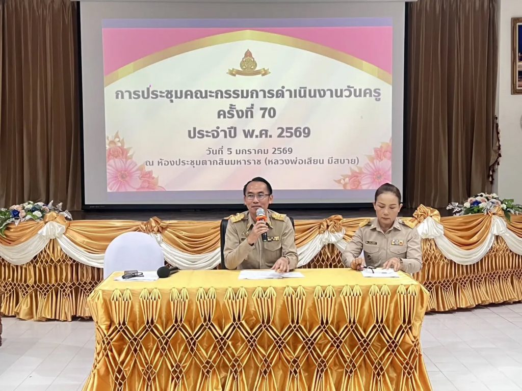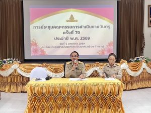นายสุเทพ ธีรัชสกุล ผู้อำนวยการสำนักงานเขตพื้นที่การศึกษาประถมศึกษาระยอง เขต 1 เป็นประธานการประชุมคณะกรรมการดำเนินงานวันครู เพื่อเตรียมความพร้อมการจัดงานวันครู ครั้งที่ 70 ประจำปี พ.ศ. 2569 ณ ห้องประชุมตากสินมหาราช (หลวงพ่อเสียน มีสบาย) สำนักงานเขตพื้นที่การศึกษาประถมศึกษาระยอง เขต 1 โดยมีนายวิชัย จันทร์ส่อง นางพนาพร ภูจอมจิตร และนายอภิชัย ธิณทัพ รองผู้อำนวยการสำนักงานเขตพื้นที่การศึกษาประถมศึกษาระยอง เขต 1 ประธานกลุ่มโรงเรียนในสังกัด และคณะกรรมการที่เกี่ยวข้อง เข้าร่วมประชุม