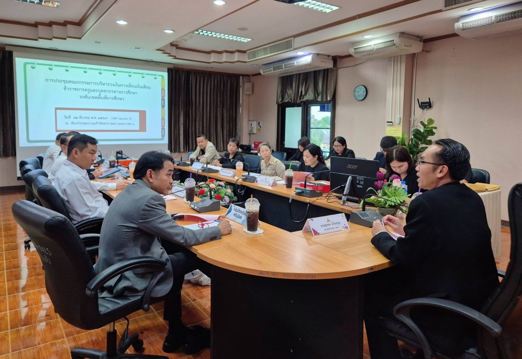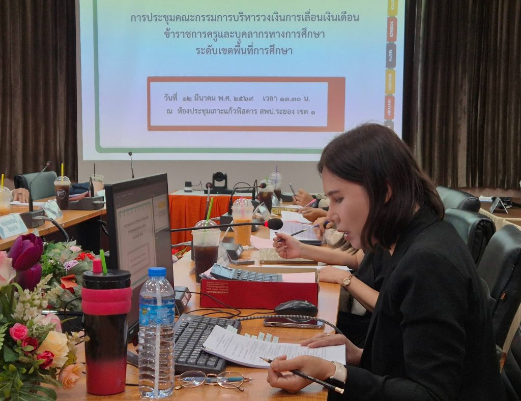 วันพฤหัสบดีที่ 12 มีนาคม พ.ศ. 2569 เวลา 13.30 น. สำนักงานเขตพื้นที่การศึกษาประถมศึกษาระยอง เขต 1 จัดการประชุมคณะกรรมการบริหารวงเงินการเลื่อนเงินเดือนข้าราชการครูและบุคลากรทางการศึกษา ระดับเขตพื้นที่การศึกษา ณ ห้องประชุมเกาะแก้วพิสดาร สำนักงานเขตพื้นที่การศึกษาประถมศึกษาระยอง เขต 1 โดยมี นายสุเทพ ธีรัชสกุล ผู้อำนวยการสำนักงานเขตพื้นที่การศึกษาประถมศึกษาระยอง เขต 1 เป็นประธานการประชุม พร้อมด้วยคณะกรรมการและผู้ที่เกี่ยวข้องเข้าร่วมประชุม