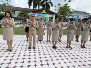 วันจันทร์ที่ 2 มีนาคม พ.ศ. 2569 เวลา 08.00 น. นายสุเทพ ธีรัชสกุล ผู้อำนวยการสำนักงานเขตพื้นที่การศึกษาประถมศึกษาระยอง เขต 1 มอบหมายให้ นางพนาพร ภูจอมจิตร รองผู้อำนวยการสำนักงานเขตพื้นที่การศึกษาประถมศึกษาระยอง เขต 1 นำข้าราชการและบุคลากรทางการศึกษาในสังกัด เข้าร่วมกิจกรรมเข้าแถวเคารพธงชาติและสวดมนต์ไหว้พระ ณ ลานกิจกรรมหน้าเสาธง สำนักงานเขตพื้นที่การศึกษาประถมศึกษาระยอง เขต 1