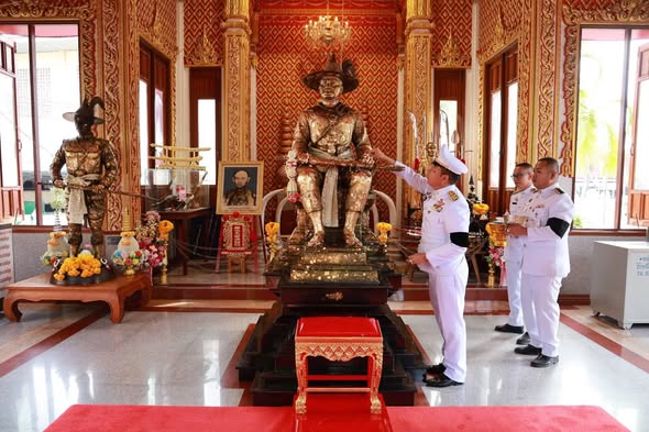 นายสุเทพ ธีรัชสกุล ผู้อำนวยการสำนักงานเขตพื้นที่การศึกษาประถมศึกษาระยอง เขต 1 มอบหมายให้ นางสาวขวัญใจ พิมพ์บัว ผู้อำนวยการกลุ่มบริหารงานการเงินและสินทรัพย์ พร้อมด้วยบุคลากรกลุ่มบริหารงานการเงินและสินทรัพย์ เข้าร่วมวางพานพุ่มดอกไม้ ในพิธีบวงสรวง และถวายราชสักการะพระบรมรูปจำลองสมเด็จพระเจ้าตากสินมหาราช ประจำปี 2568