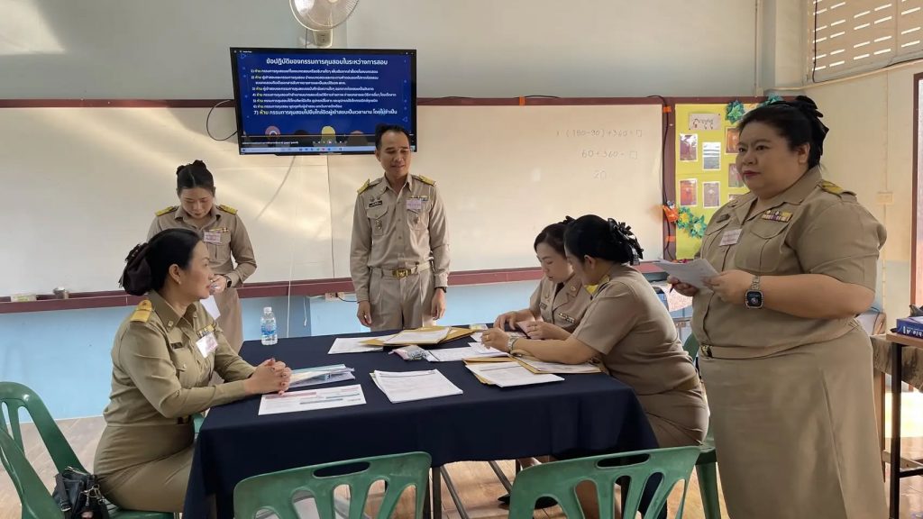 นายสุเทพ ธีรัชสกุล ผู้อำนวยการสำนักงานเขตพื้นที่การศึกษาประถมศึกษาระยอง เขต 1 มอบหมายให้ นายวิชัย จันทร์ส่อง รองผู้อำนวยการสำนักงานเขตพื้นที่การศึกษาประถมศึกษาระยอง เขต 1 พร้อมด้วย นางนิสรา สิมพรักษ์ ผู้อำนวยการกลุ่มนิเทศ ติดตามและประเมินผลการจัดการศึกษา และคณะศึกษานิเทศก์ ประกอบด้วย นายนาวี เวทวงศ์ นางสาวนพมาส โรตมนันทกฤต นางสาวสุวิมล ไชยชะนะ และนางสาววริสรา วจีศักดิ์สิทธิ์ ลงพื้นที่ปฏิบัติหน้าที่คณะกรรมการกำกับ ติดตามการจัดสอบทางการศึกษาระดับชาติขั้นพื้นฐาน (O-NET) ปีการศึกษา 2568 ของชั้นมัธยมศึกษาปีที่ 3 ประจำสนามสอบโรงเรียนในสังกัดสำนักงานเขตพื้นที่การศึกษาประถมศึกษาระยอง เขต 1 ณ โรงเรียนบ้านบึงตาต้า โรงเรียนนิคมสร้างตนเองจังหวัดระยอง 8 โรงเรียนบ้านปากแพรก โรงเรียนชุมชนบริษัทน้ำตาลตะวันออก โรงเรียนวัดหนองพะวา โรงเรียนวัดห้วงหิน และโรงเรียนวัดปทุมาวาส