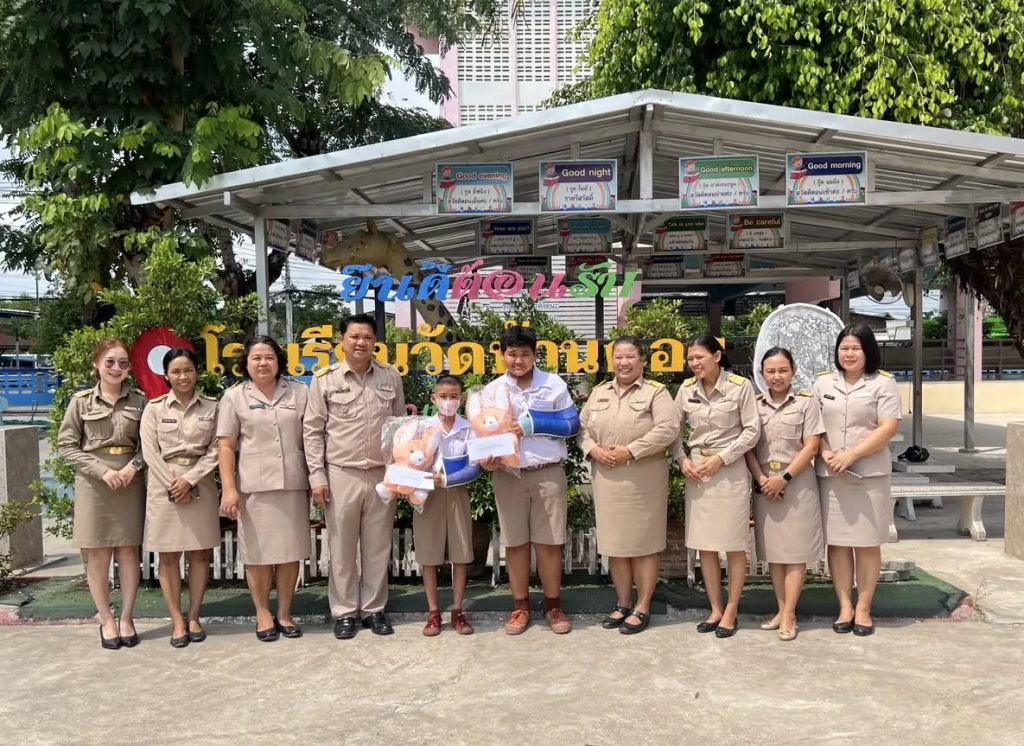 นายสุเทพ ธีรัชสกุล ผอ.สพป.ระยอง เขต 1 มอบหมาย นายอภิชัย ธิณทัพ รองผอ.สพป.ระยอง เขต 1 พร้อมด้วย นางสาวพัสน์นันท์ จิตต์ศรี ผอ.กลุ่มส่งเสริมการจัดการศึกษา และบุคลากรกลุ่มส่งเสริมการจัดการศึกษา ลงพื้นที่ โดยมีนางสาววิภาพรรณ อุบล ผอ.รร.วัดบ้านดอน นางภควรรณ มีเจริญ รองผอ.รร.และครูประจำชั้น ให้การต้อนรับ ให้กำลังใจนักเรียน จำนวน 2 ราย ได้แก่ เด็กชายศิวกร เหมวงษ์ นักเรียนชั้นประถมศึกษาปีที่ 4 และเด็กชายสุทธญาณ์ เพิกประยูร นักเรียนชั้นประถมศึกษาปีที่ 6 ประสบอุบัติเหตุ พร้อมทั้งมอบเงินช่วยเหลือ รายละ 2,000 บาท และตุ๊กตา ณ โรงเรียนวัดบ้านดอน
