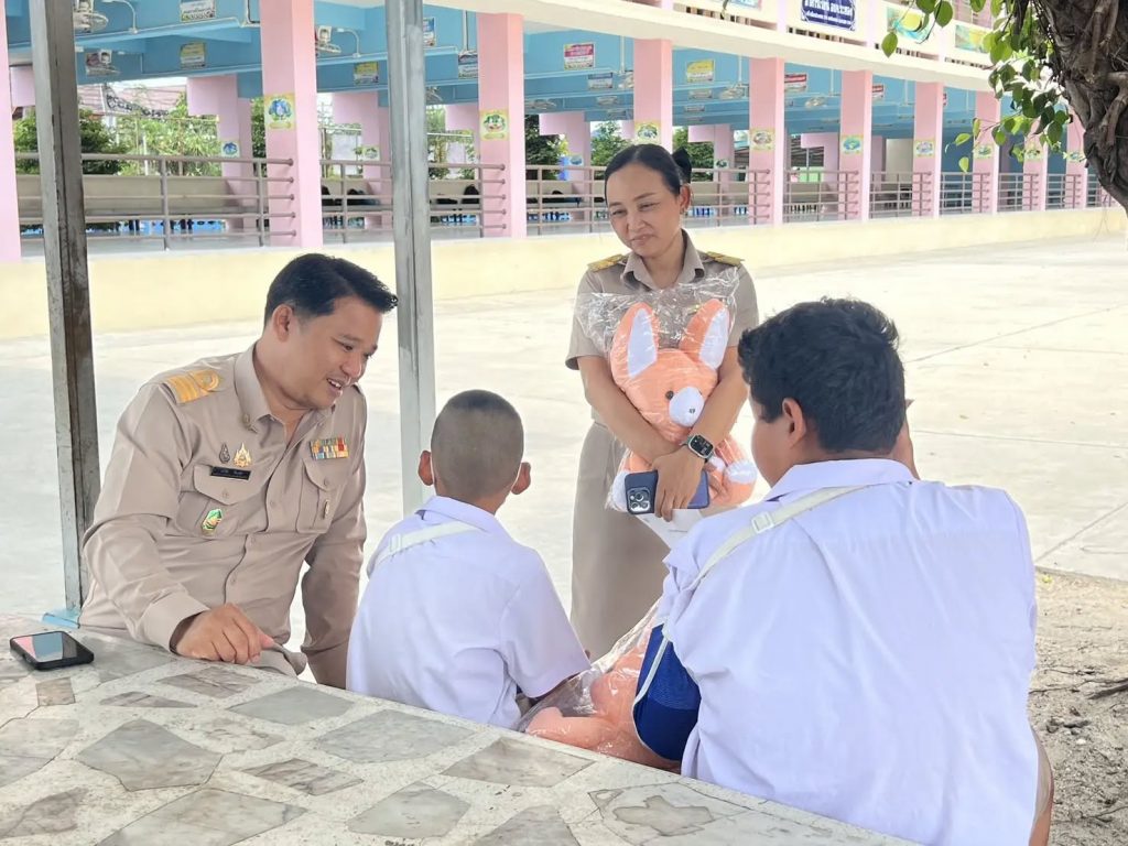 นายสุเทพ ธีรัชสกุล ผอ.สพป.ระยอง เขต 1 มอบหมาย นายอภิชัย ธิณทัพ รองผอ.สพป.ระยอง เขต 1 พร้อมด้วย นางสาวพัสน์นันท์ จิตต์ศรี ผอ.กลุ่มส่งเสริมการจัดการศึกษา และบุคลากรกลุ่มส่งเสริมการจัดการศึกษา ลงพื้นที่ โดยมีนางสาววิภาพรรณ อุบล ผอ.รร.วัดบ้านดอน นางภควรรณ มีเจริญ รองผอ.รร.และครูประจำชั้น ให้การต้อนรับ ให้กำลังใจนักเรียน จำนวน 2 ราย ได้แก่ เด็กชายศิวกร เหมวงษ์ นักเรียนชั้นประถมศึกษาปีที่ 4 และเด็กชายสุทธญาณ์ เพิกประยูร นักเรียนชั้นประถมศึกษาปีที่ 6 ประสบอุบัติเหตุ พร้อมทั้งมอบเงินช่วยเหลือ รายละ 2,000 บาท และตุ๊กตา ณ โรงเรียนวัดบ้านดอน