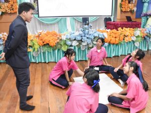 นางสาวธาริณี ธารทอง ผู้อำนวยการโรงเรียนวัดห้วยโป่ง มอบหมาย นายอรรถวุฒิ เกียรติสุข นางธิดารัตน์ พัฒนชัย รองผู้อำนวยการโรงเรียน นำตัวแทนคณะครูและนักเรียนเข้าร่วมกิจกรรมโครงการโรงเรียนปลอดภัยสำหรับเด็ก ภายใต้หลักการ ๔+๖ โมเดล พลัส จัดโดยบ้านพักเด็กและครอบครัวจังหวัดระยอง นำโดยนางรัชนี ยอดรัก หัวหน้าบ้านพักเด็กและครอบครัวจังหวัดระยอง และคณะวิทยากร ณ ห้องประชุมใหญ่ โรงเรียนวัดห้วยโป่ง