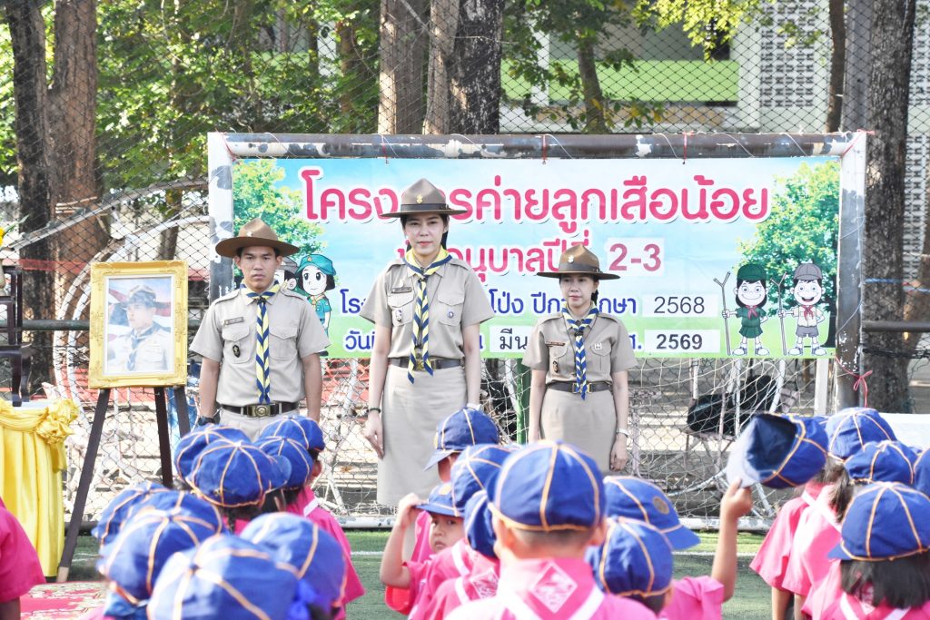 4 มีนาคม 2569 นางสาวธาริณี ธารทอง ผู้อำนวยการโรงเรียนวัดห้วยโป่ง พร้อมด้วย นายอรรถวุฒิ เกียรติสุข นางธิดารัตน์ พัฒนชัย รองผู้อำนวยการโรงเรียน นำคณะครูและนักเรียนระดับชั้นอนุบาล 2-3 เข้าร่วมกิจกรรมโครงการค่ายลูกเสือน้อย ประจำปีการศึกษา 2568 ณ สนามหญ้าเทียม โรงเรียนวัดห้วยโป่ง