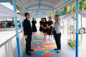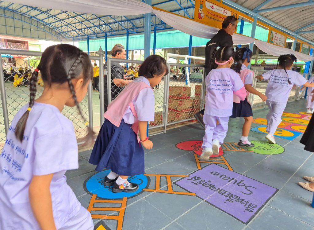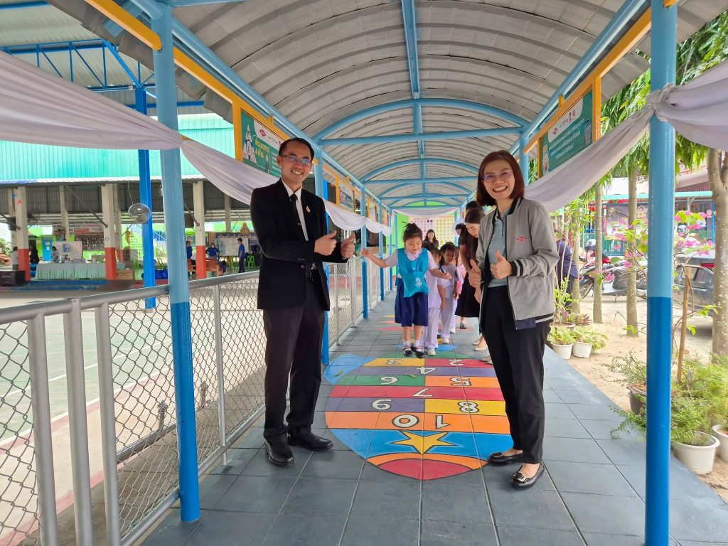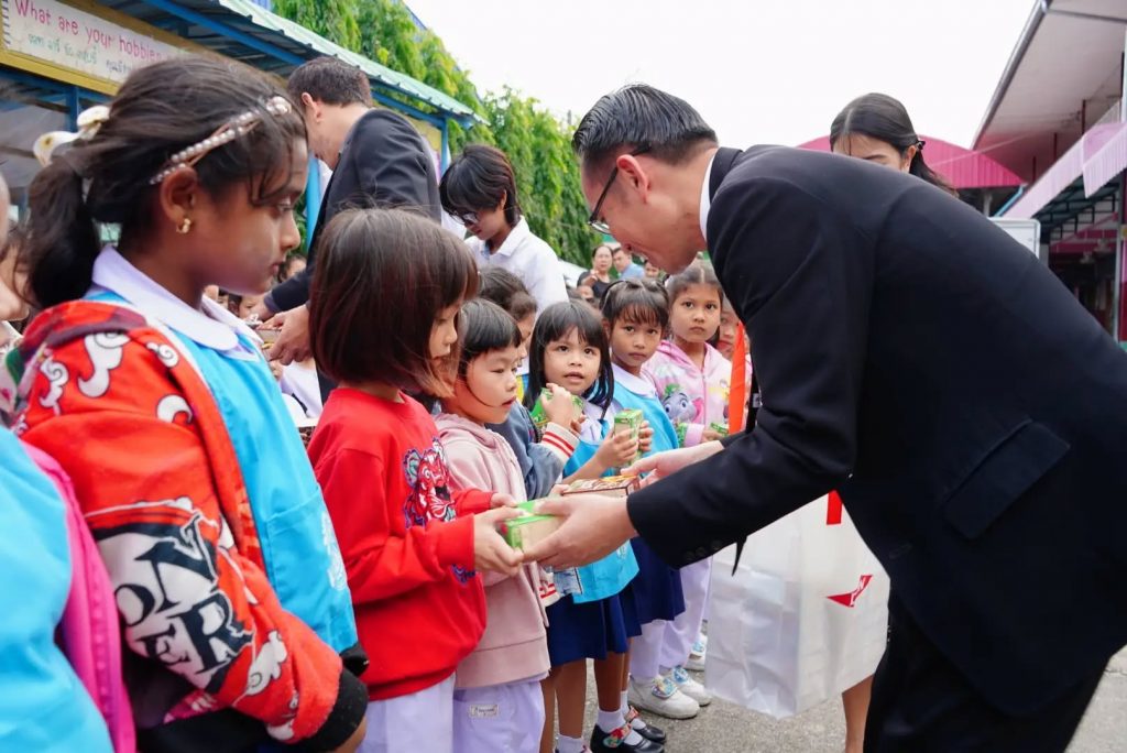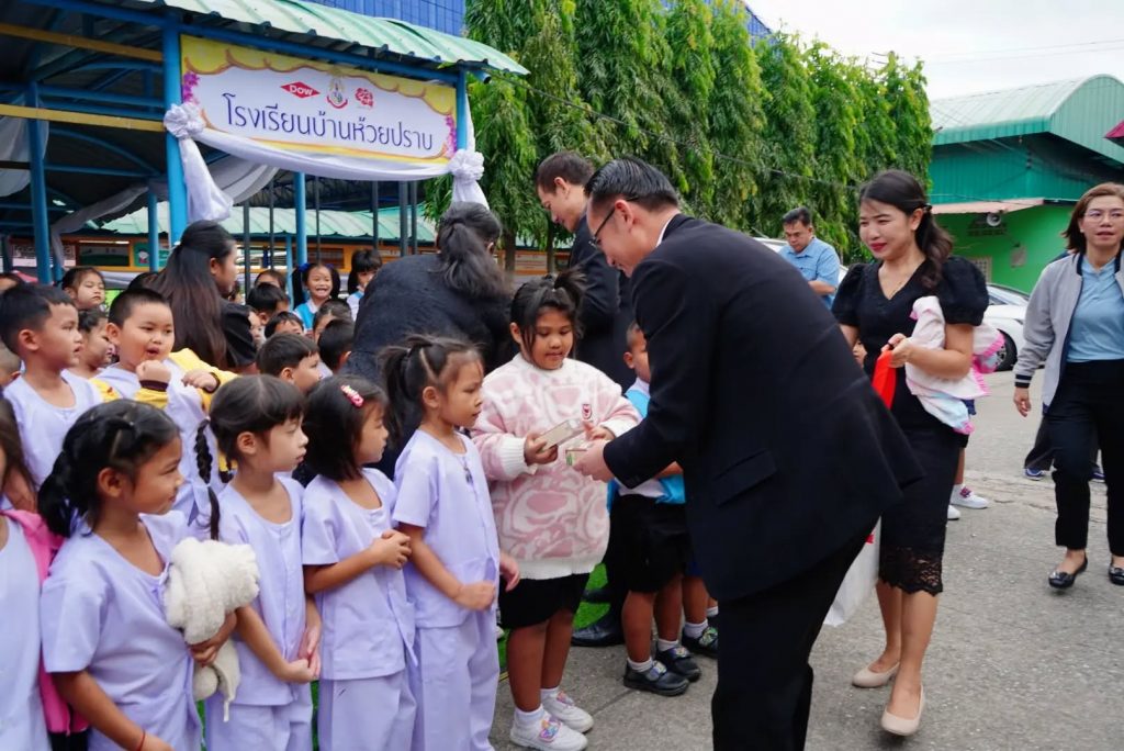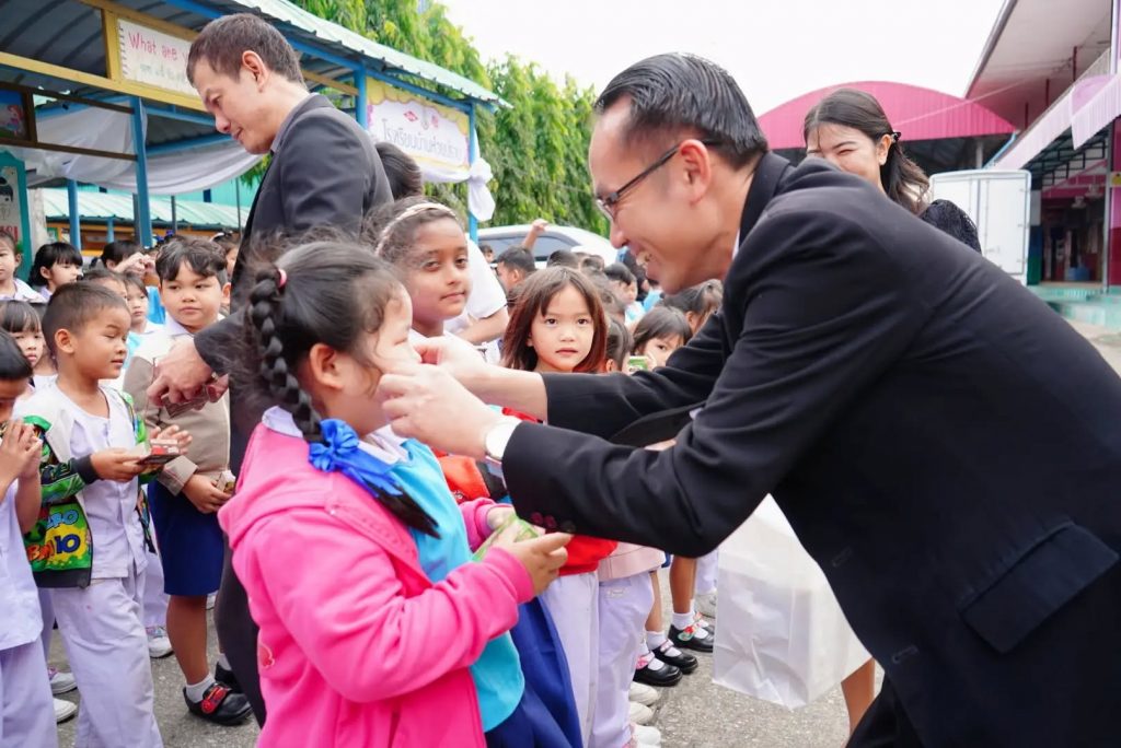 ในการนี้ ผู้อำนวยการเขตพื้นที่ฯ ได้ร่วมมอบ ขนมและเครื่องดื่มจากกลุ่มบริษัท ดาว ประเทศไทย ให้กับเด็กนักเรียน สร้างรอยยิ้ม ความสุข และบรรยากาศที่เต็มไปด้วยความอบอุ่น ก่อนร่วมชมพื้นที่ถนนการเรียนรู้ EF