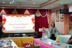นายสุเทพ ธีรัชสกุล ผู้อำนวยการสำนักงานเขตพื้นที่การศึกษาประถมศึกษาระยอง เขต 1 เป็นประธานในพิธีรับมอบ โครงการถนนการเรียนรู้ EF ณ โรงเรียนบ้านห้วยปราบ อำเภอปลวกแดง จังหวัดระยอง